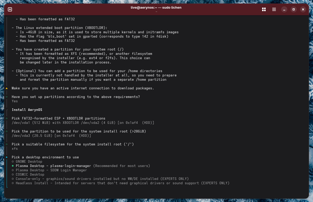 As before, AerynOS 2026.05 is a Live GNOME ISO designed to deliver the in-house Rust-written Lichen installer. One thing the developers have changed that caught my attention is that, during installation, the recommended desktop environment is now KDE Plasma, which is a pleasant surprise.