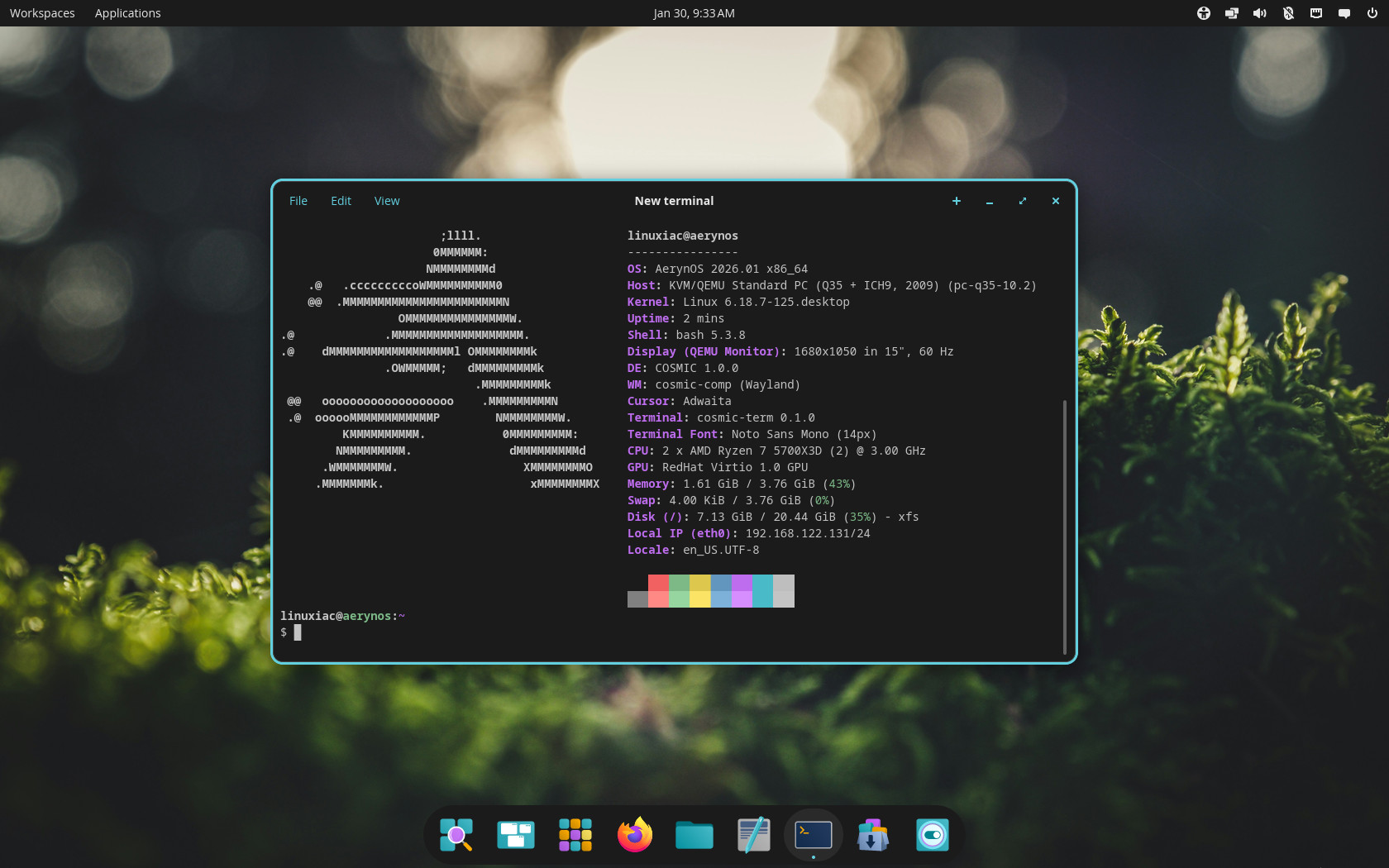 And this is the moment to say that, even though the Lichen installer is still considered alpha, the installation I performed, including adding the COSMIC desktop environment, went completely smoothly with no issues. So, well done, AerynOS devs.