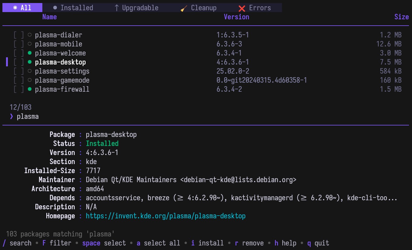 Of course, APTUI does not replace APT itself. Instead, it serves as a frontend on top of the existing package management stack, providing a structured interface for tasks typically performed manually with APT commands such as apt install, apt remove, or apt upgrade.