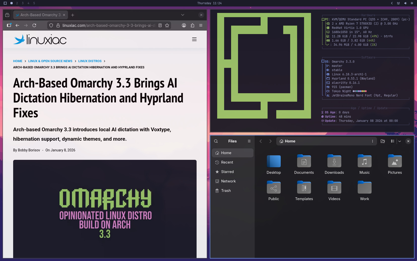 Omarchy, a preconfigured Arch Linux setup packaged as a distro that ships with a Hyprland tiling window manager and a curated set of defaults and developer tools, has announced the release of version 3.3.