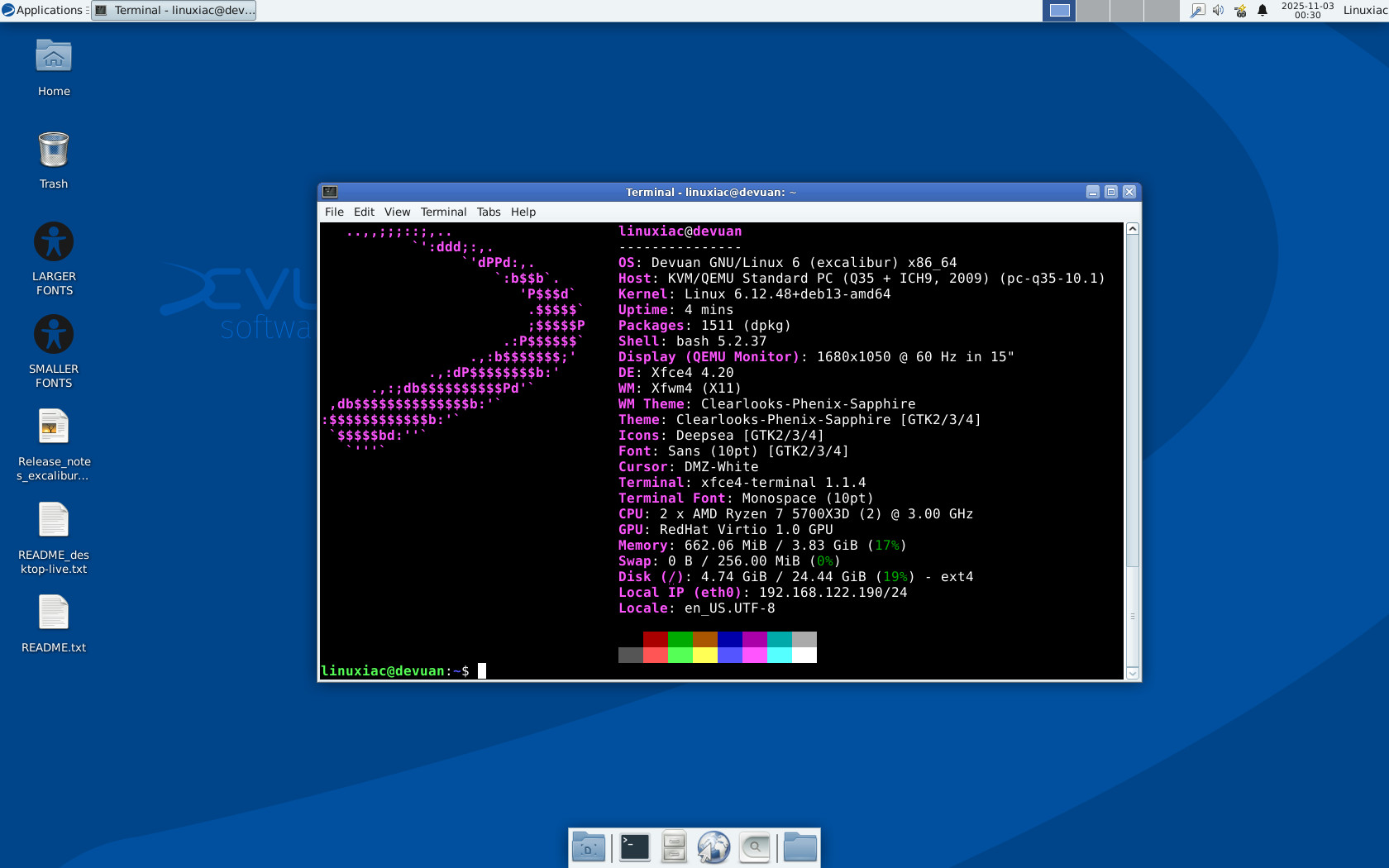 As with Debian 13, support for the i386 architecture has been reduced. Devuan no longer provides a 32-bit installer ISO, although packages remain available in the repositories for legacy systems that still require them. Architectures fully supported include amd64, armel, armhf, arm64, ppc64el, and riscv64.