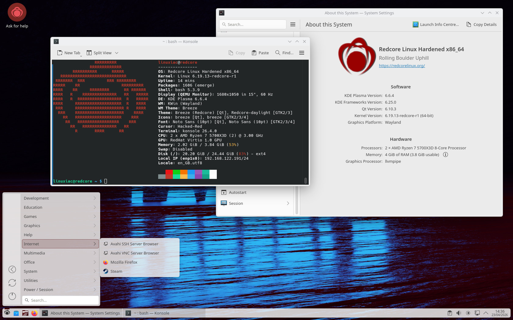 For readers unfamiliar with it, Redcore is a Gentoo-based rolling-release distro that uses prebuilt binary packages rather than Gentoo’s traditional source-based workflow. The project aims to provide a faster way to deploy a Gentoo-compatible desktop system without manual package compilation, and uses a hardened Gentoo profile by default.