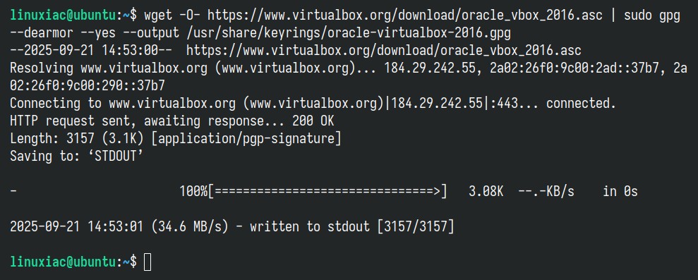 wget -O- https://www.virtualbox.org/download/oracle_vbox_2016.asc | sudo gpg --dearmor --yes --output /usr/share/keyrings/oracle-virtualbox-2016.gpg