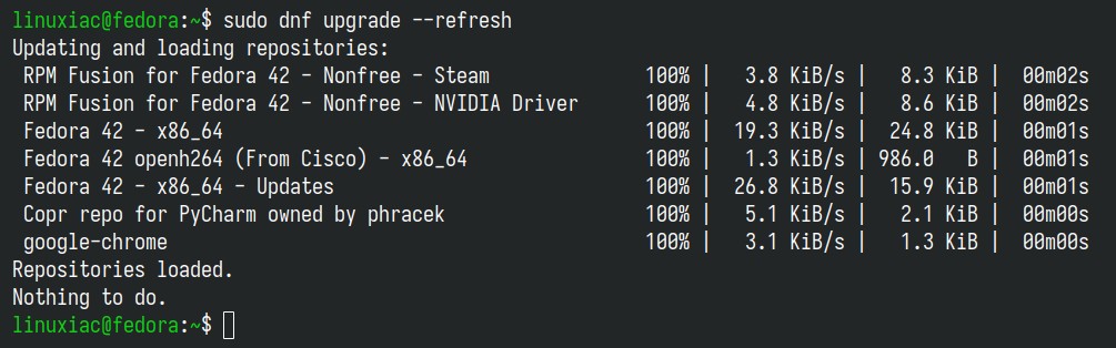 sudo dnf upgrade --refreshCode language: Bash (bash)