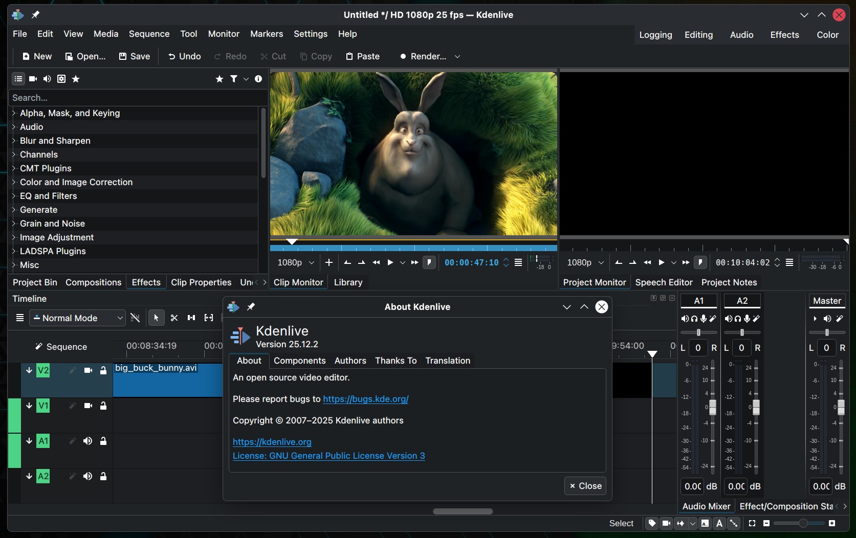 For stability, Kdenlive 25.12.2 fixes crashes that happened when opening and quickly closing the settings dialog. It also solves glitches when opening projects with missing clips on Windows.