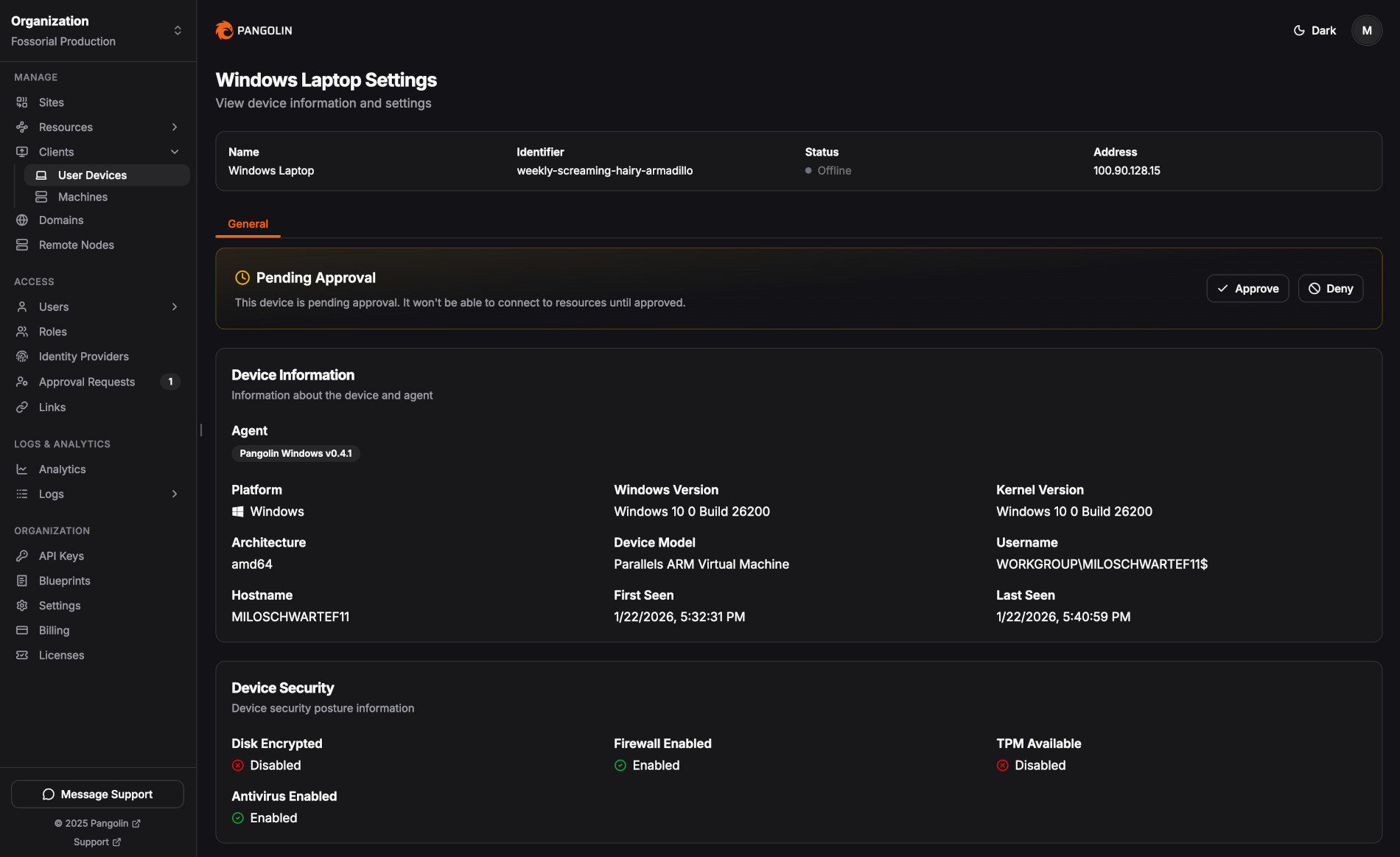 But what personally most impressed me is that Pangolin 1.15 adds Device Approvals. As you know, previously, access controls focused primarily on users and roles, allowing any device to connect as long as valid credentials were presented. But that’s no longer the case.