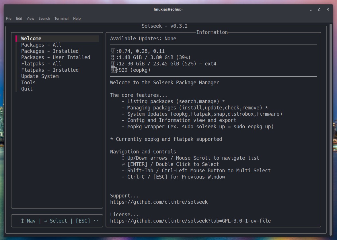 At the end of last month, I introduced Solseek, a new TUI wrapper for Solus’s eopkg package manager, which offers a fast and streamlined way to browse, install, and update software on Solus Linux. Since then, it has been progressing rapidly, with ongoing development introducing new features and enhancements.